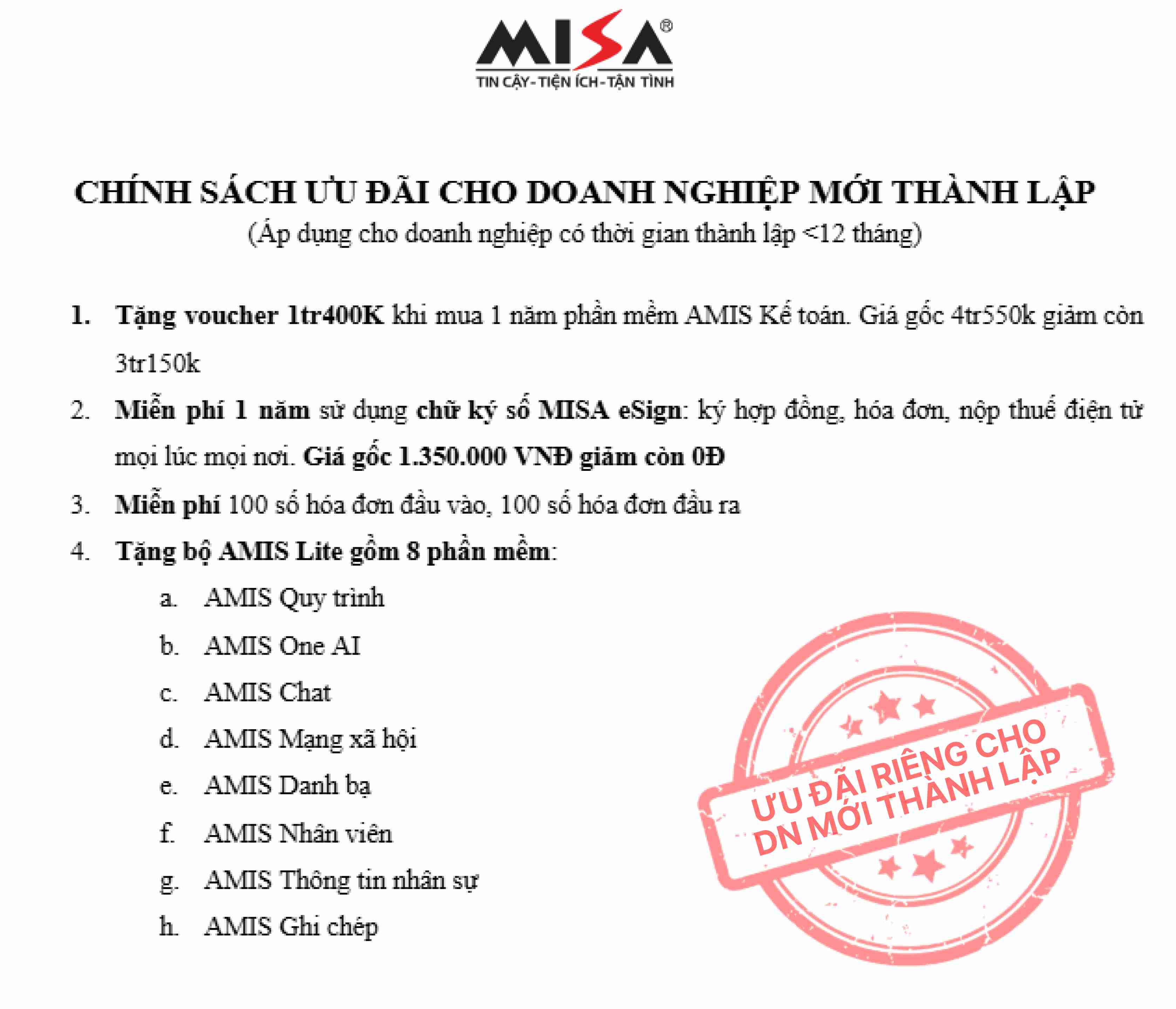 Thay lời cam kết đồng hành, MISA triển khai chương trình ưu đãi đặc biệt dành riêng cho các doanh nghiệp mới:
