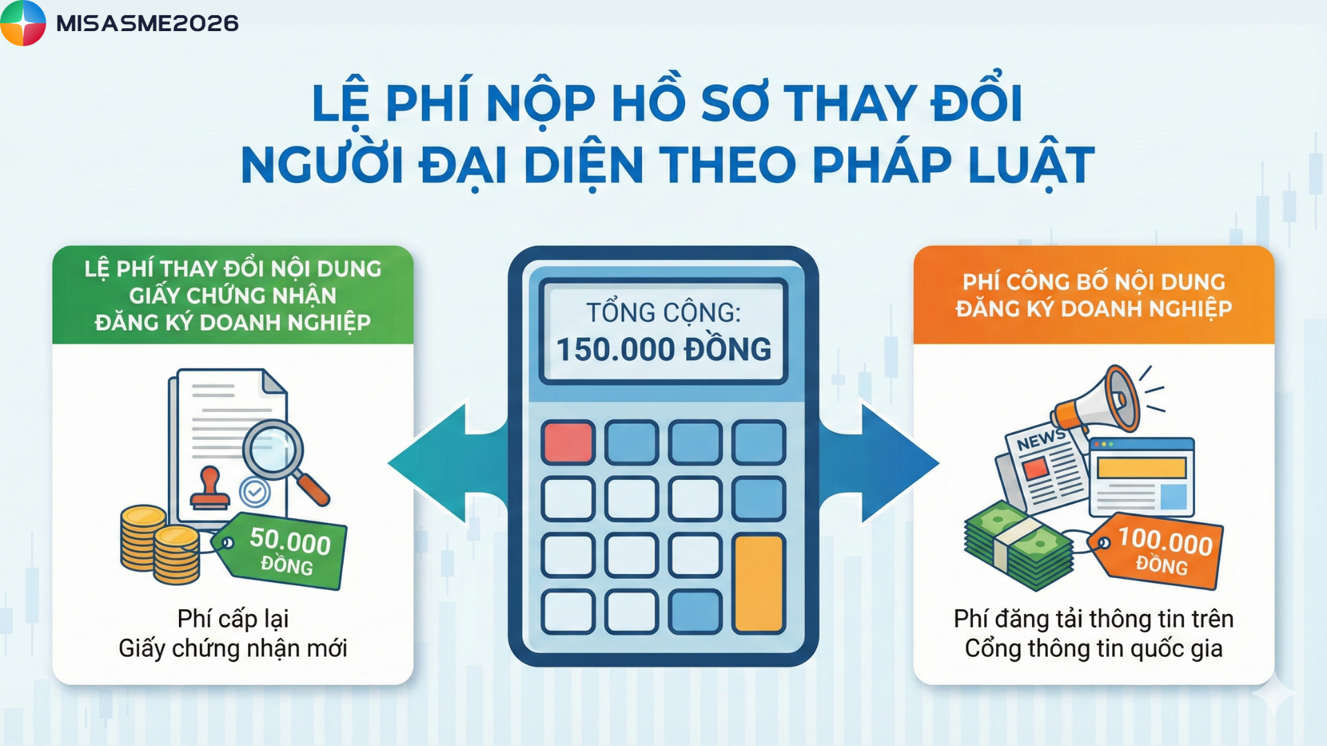 Lệ phí nộp hồ sơ thay đổi người đại diện theo pháp luật là 150.000 đồng