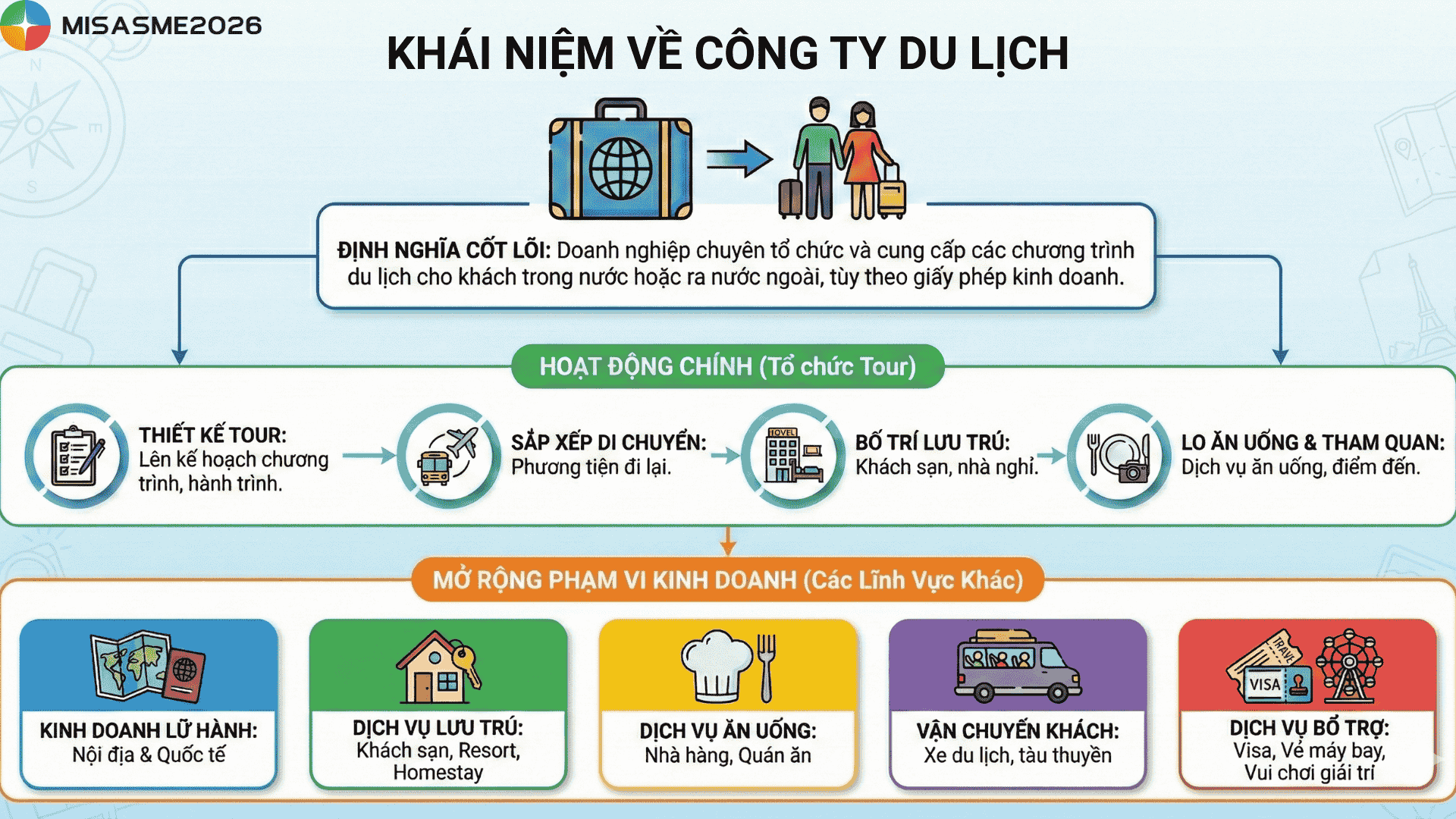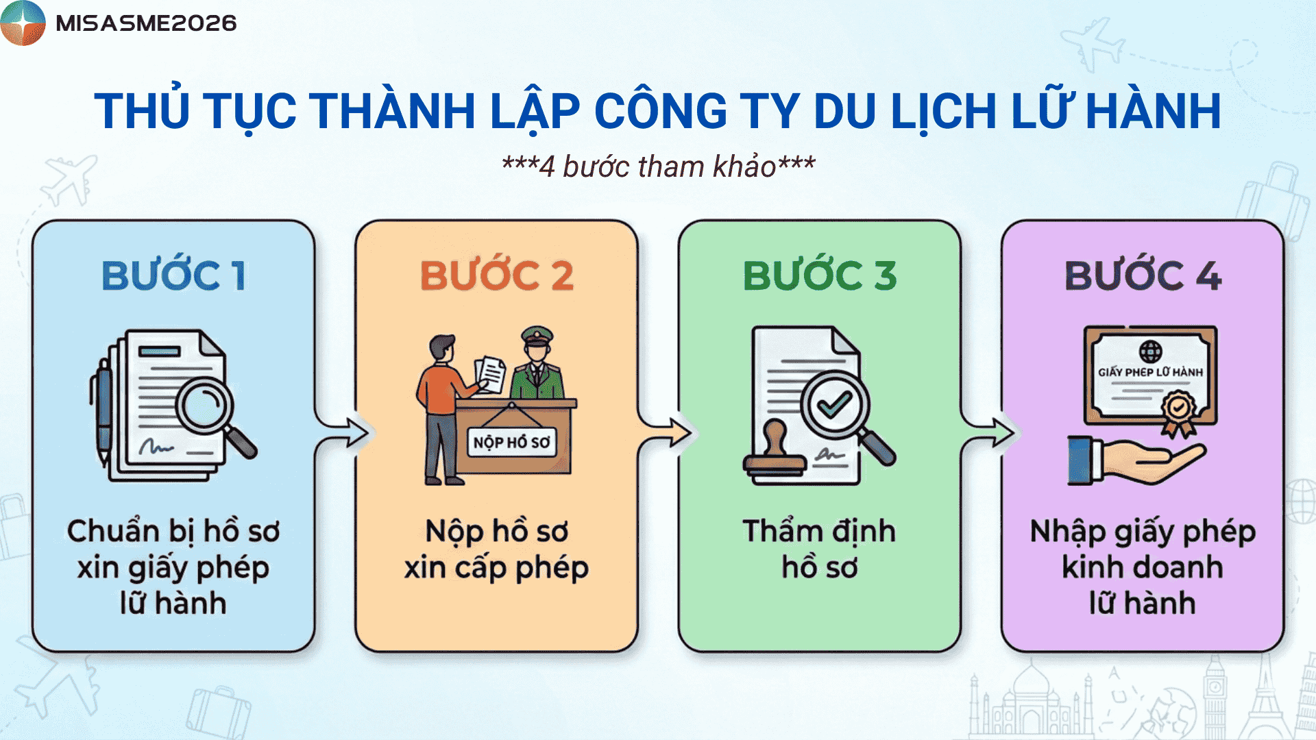 Trong bối cảnh nhu cầu du lịch ngày càng tăng, thành lập công ty du lịch đang trở thành lựa chọn được nhiều cá nhân và doanh nghiệp quan tâm. Tuy nhiên, đây là ngành nghề kinh doanh có điều kiện, đòi hỏi người thành lập phải nắm rõ quy định về loại hình hoạt động, điều kiện nhân sự, vốn ký quỹ cũng như quy trình xin giấy phép lữ hành. Bài viết dưới đây của Phần mềm kế toán MISA SME sẽ giúp bạn hiểu rõ từ A–Z những vấn đề cần biết khi thành lập công ty du lịch lữ hành theo quy định pháp luật hiện hành.