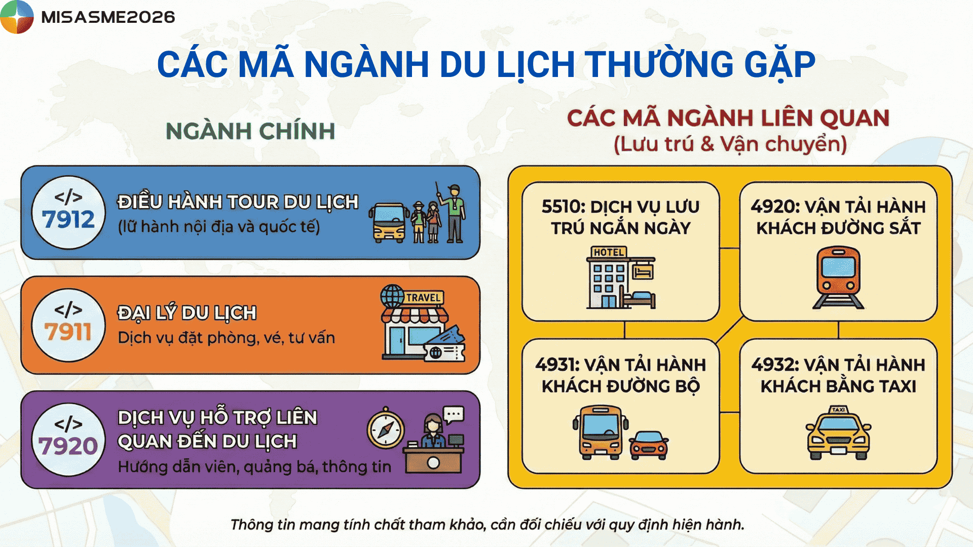 - Các mã ngành liên quan đến lưu trú và vận chuyển như 5510, 4920, 4931, 4932.