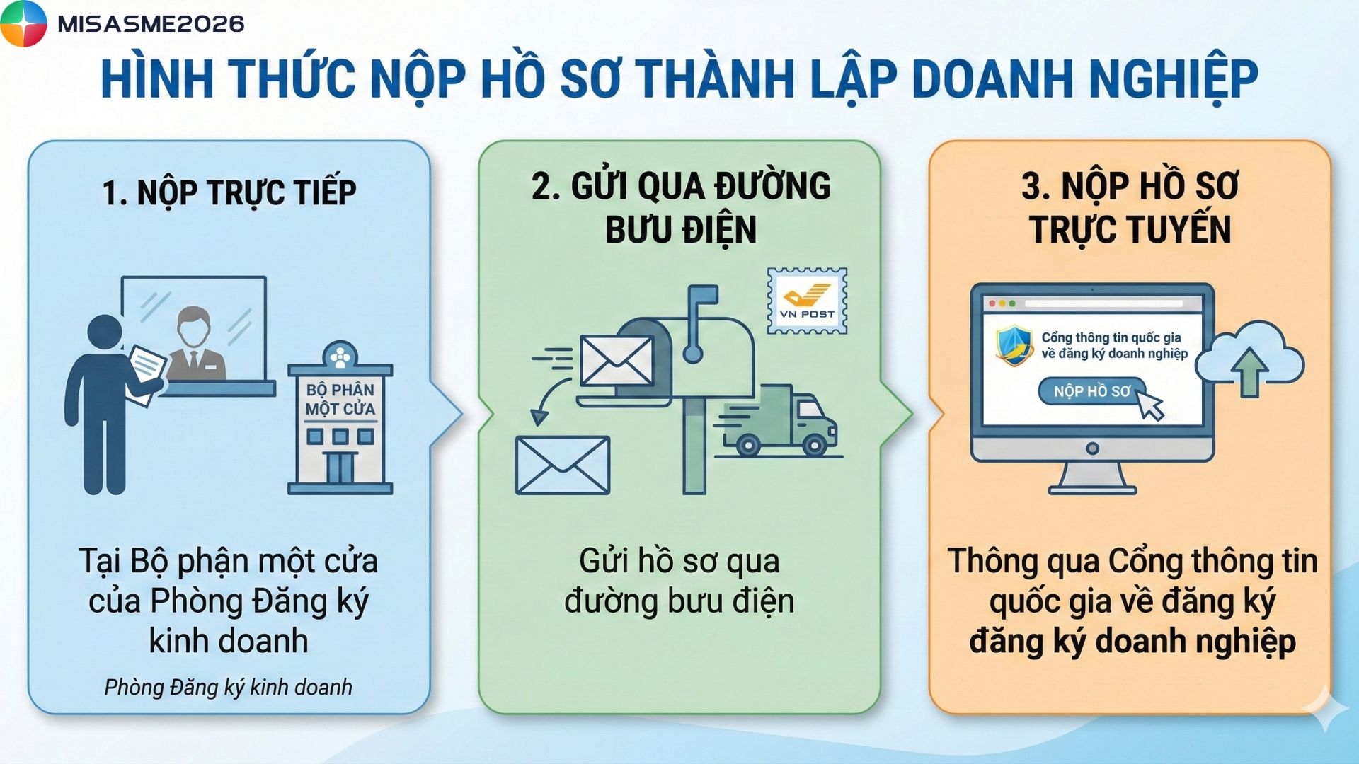 - Hình thức nộp hồ sơ: Doanh nghiệp có thể lựa chọn một trong các phương thức sau: