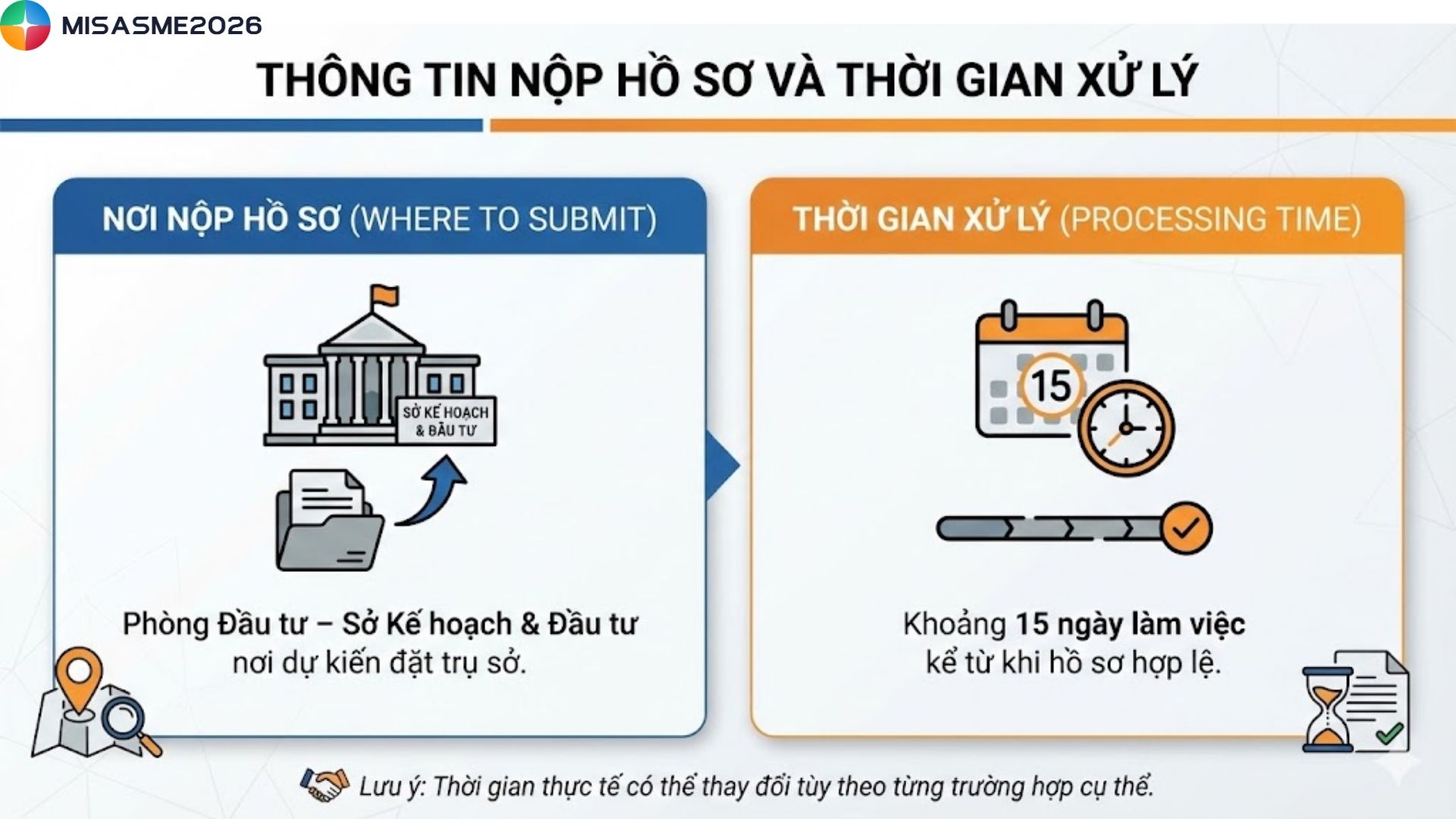 Nộp hồ sơ: Phòng Đầu tư – Sở KH&ĐT.