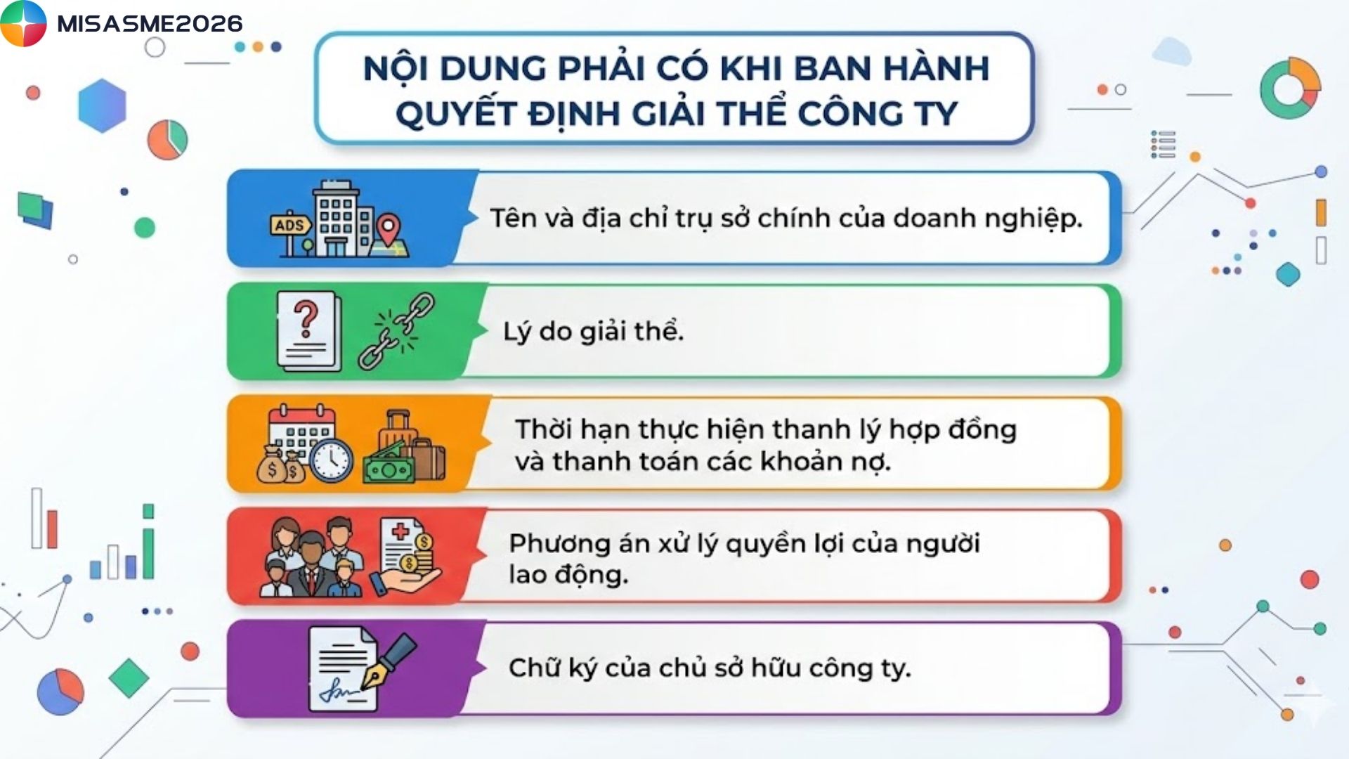 Trong quá trình hoạt động, nhiều doanh nghiệp buộc phải chấm dứt kinh doanh vì các lý do khác nhau. Để giải thể công ty TNHH 1 thành viên đúng quy định, bạn cần nắm rõ các trường hợp và quy trình thực hiện tương ứng. Nếu đang chuẩn bị hồ sơ hoặc muốn thủ tục diễn ra nhanh, đúng luật, hãy theo dõi ngay nội dung dưới đây của phần mềm kế toán MISA SME để tránh rủi ro pháp lý không đáng có.