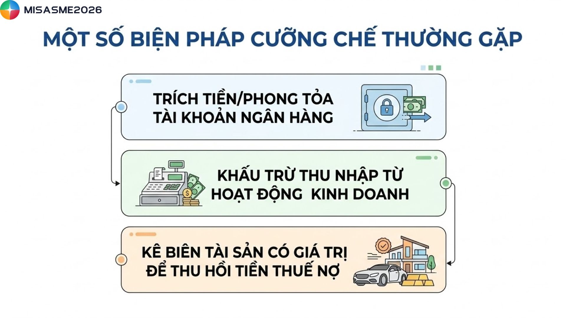 Một số biện pháp cưỡng chế thường gặp gồm: