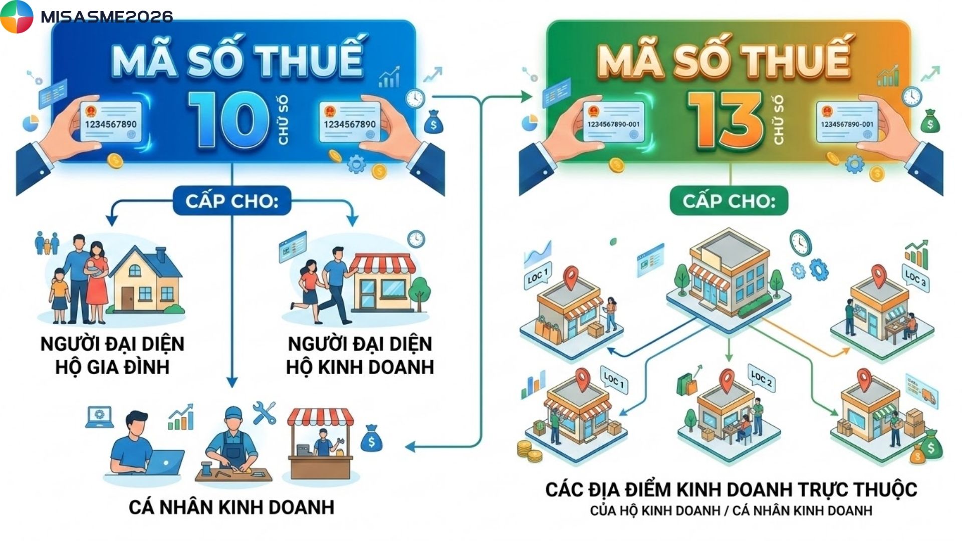 - Mã số thuế 13 chữ số được cấp cho các địa điểm kinh doanh trực thuộc của hộ kinh doanh hoặc cá nhân kinh doanh.