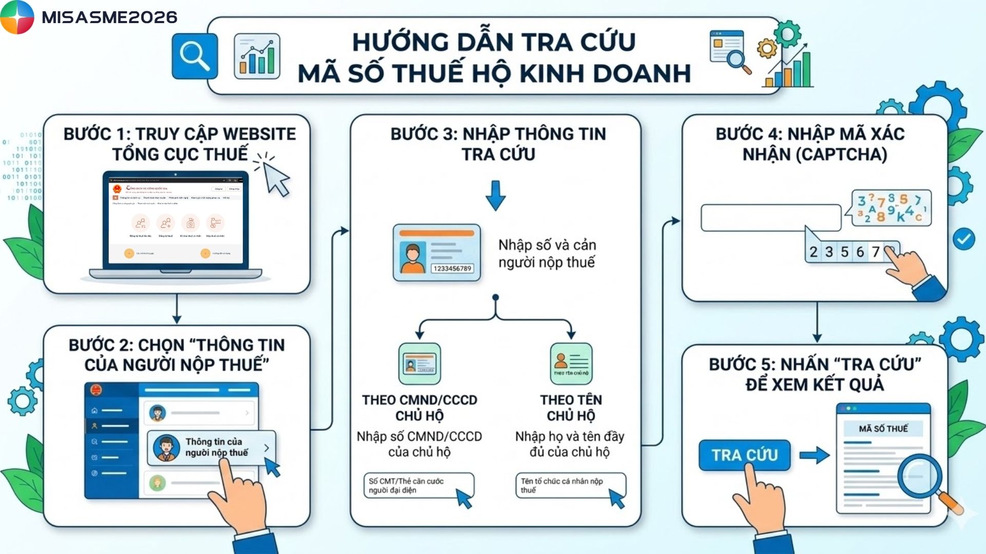 Việc tra cứu mã số thuế hộ kinh doanh giúp chủ hộ và cá nhân nhanh chóng kiểm tra thông tin đăng ký, phục vụ cho các thủ tục thuế và hoạt động kinh doanh. Tuy nhiên, không phải ai cũng biết cách tra cứu chính xác và nhanh chóng trên hệ thống của cơ quan thuế. Cùng theo dõi bài viết dưới đây của phần mềm kế toán MISA SME để biết cách tra cứu mã số thuế hộ kinh doanh đơn giản, chính xác chỉ trong vài bước.