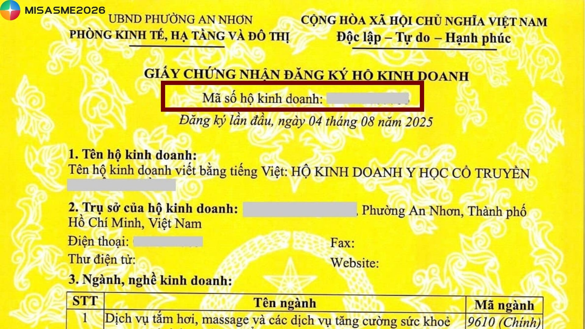 • Mã số thuế (đồng thời là mã số hộ kinh doanh)