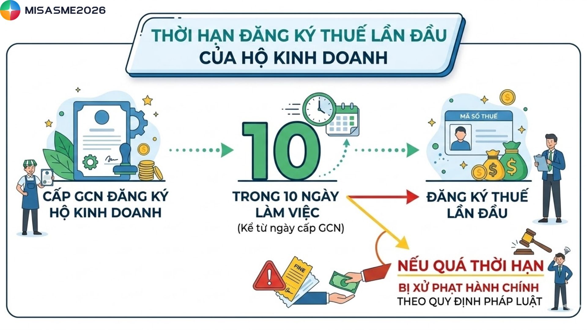 Trong quá trình thành lập và hoạt động, nhiều chủ hộ kinh doanh thường bỏ qua hoặc thực hiện muộn thủ tục đăng ký thuế, dẫn đến nguy cơ bị xử phạt theo quy định pháp luật. Vậy phạt chậm đăng ký thuế hộ kinh doanh được áp dụng như thế nào và mức phạt cụ thể là bao nhiêu? Hãy cùng tìm hiểu chi tiết trong bài viết dưới đây của phần mềm kế toán doanh nghiệp MISA SME để nắm rõ quy định và tránh những rủi ro không đáng có khi kinh doanh.