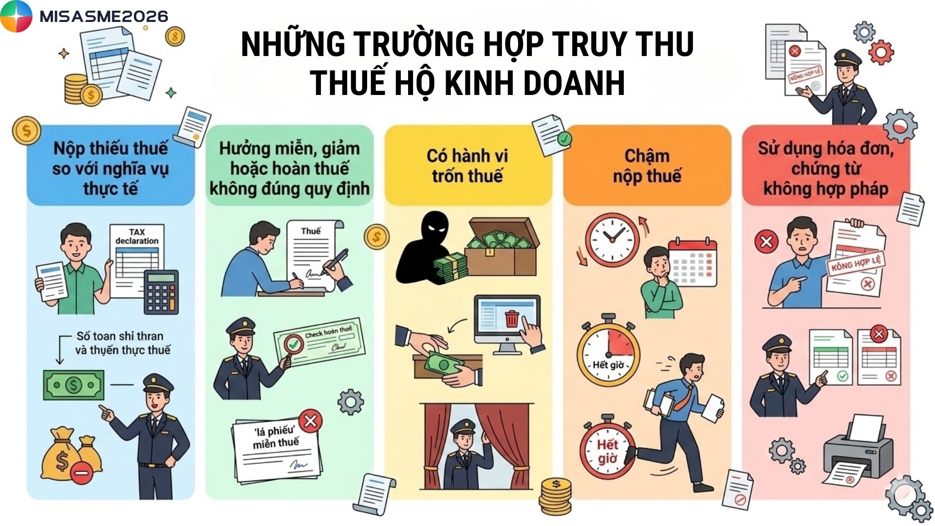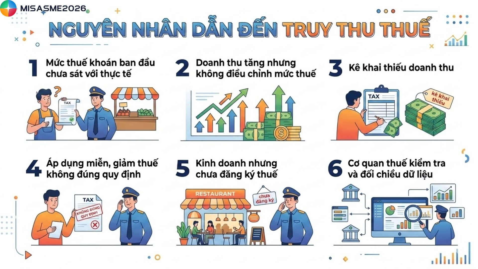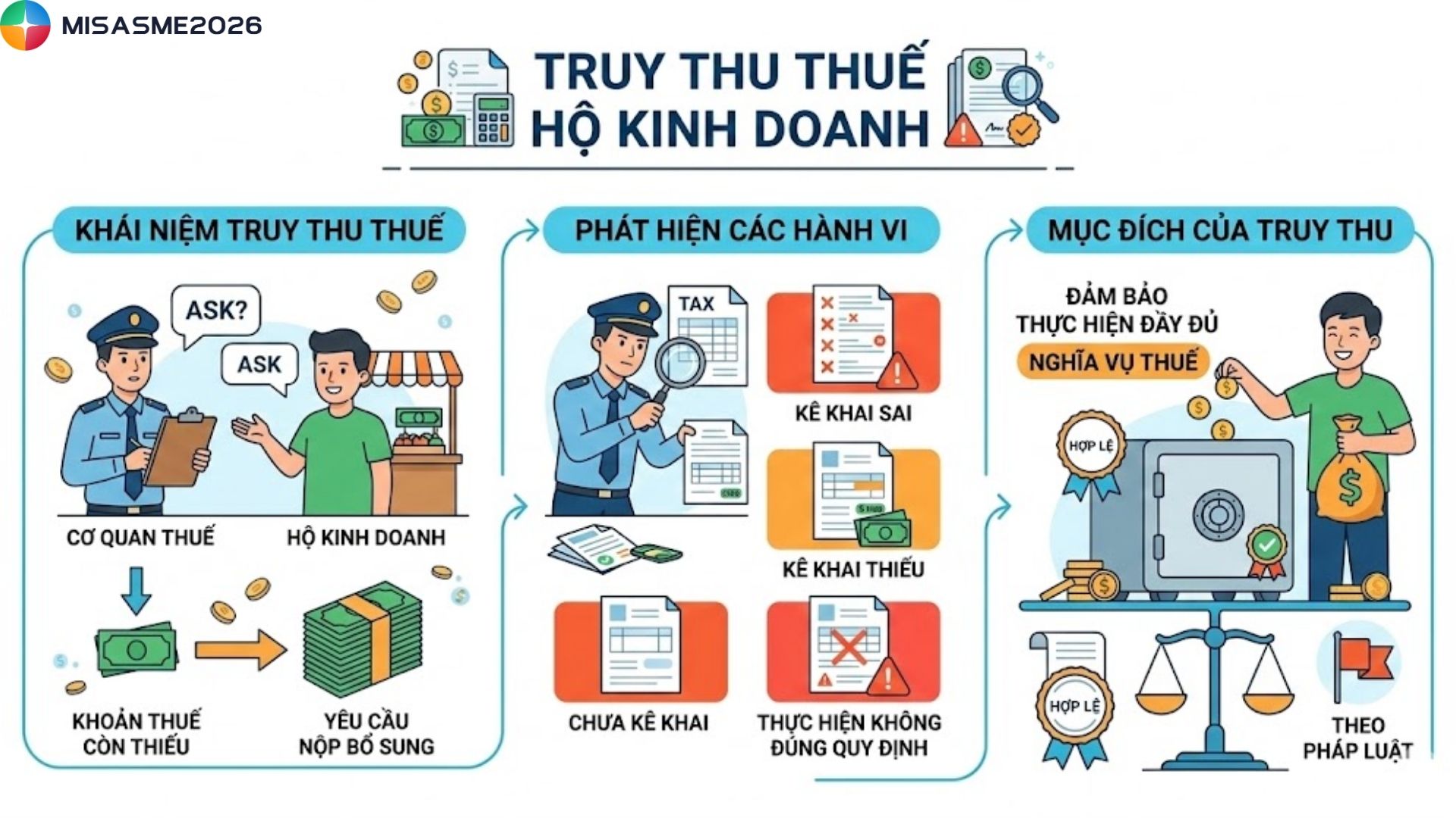 Truy thu thuế là vấn đề nhiều hộ kinh doanh lo ngại khi cơ quan thuế kiểm tra và phát hiện số thuế đã nộp chưa đúng với doanh thu thực tế. Nếu không hiểu rõ quy định, hộ kinh doanh có thể phải nộp bổ sung số thuế lớn kèm các khoản chậm nộp. Cùng tìm hiểu chi tiết về truy thu thuế hộ kinh doanh, các trường hợp thường gặp và cách hạn chế rủi ro trong bài viết dưới đây của phần mềm kế toán MISA SME.