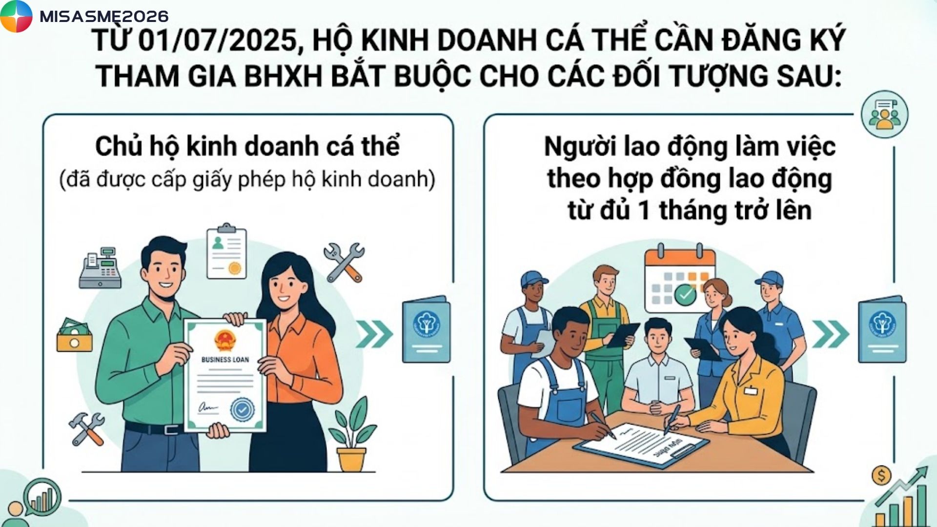 Như vậy, từ 01/07/2025, hộ kinh doanh cá thể cần đăng ký tham gia BHXH bắt buộc cho các đối tượng sau: