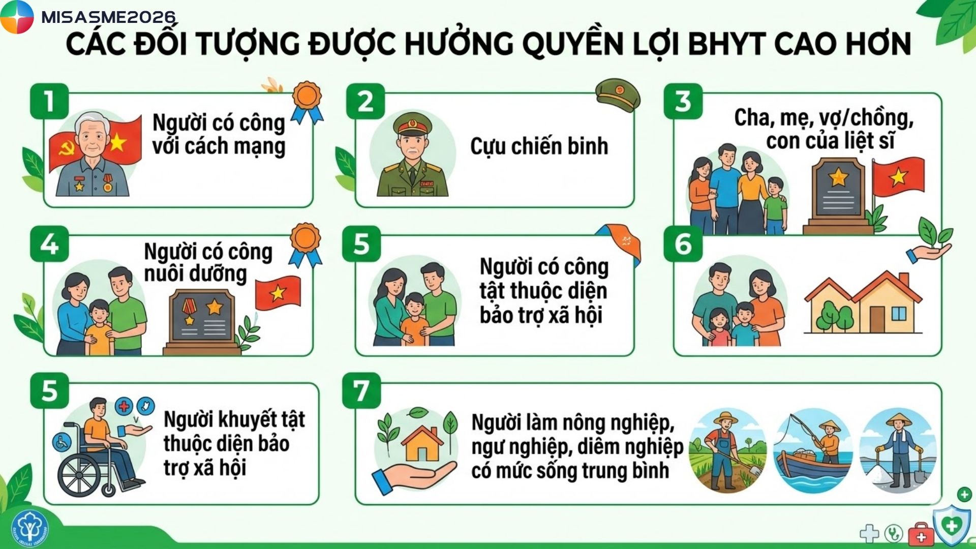 Lưu ý về các đối tượng được hưởng quyền lợi bảo hiểm y tế cao hơn gồm có: