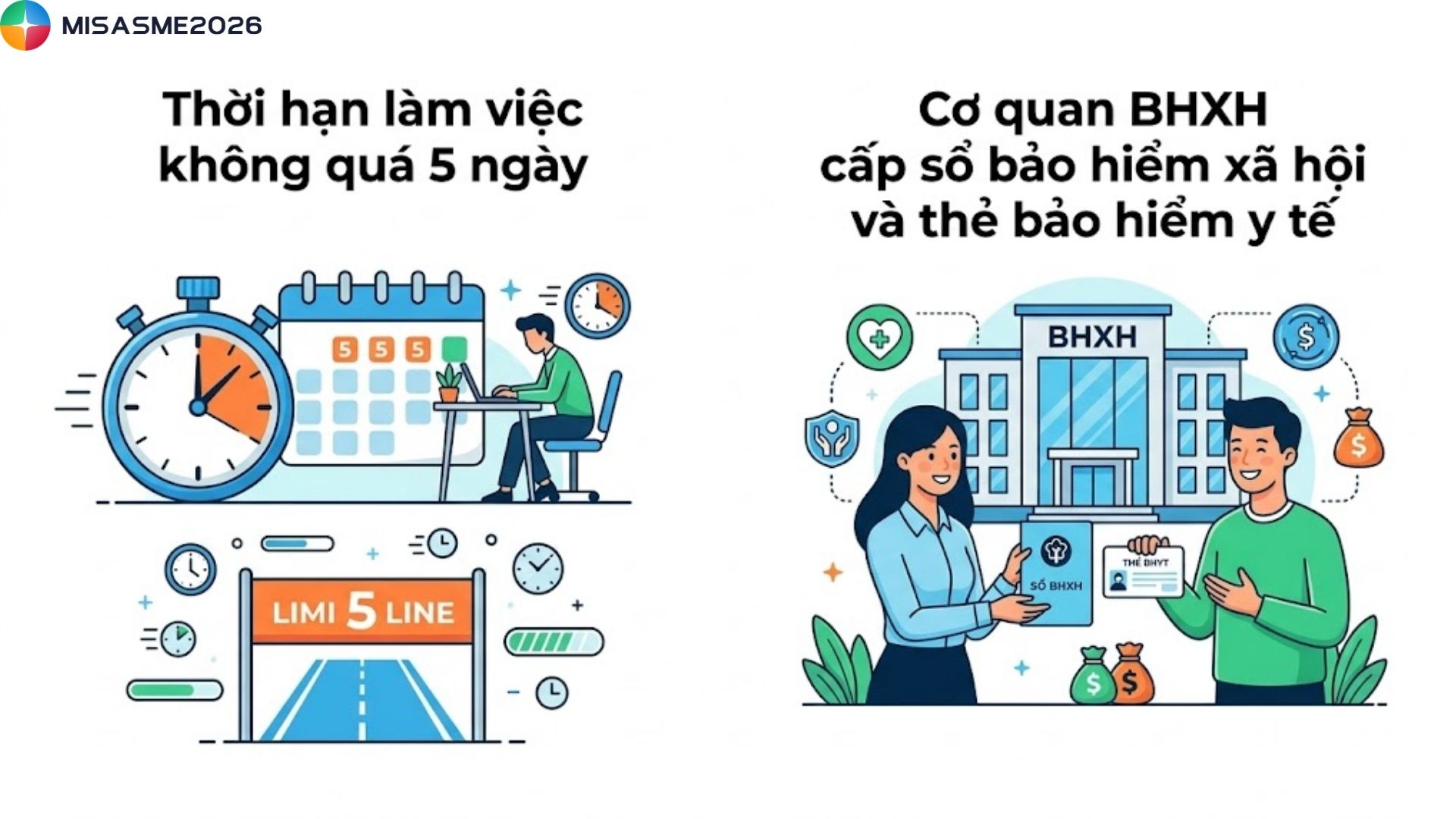 Trong thời hạn không quá 5 ngày làm việc kể từ khi nhận đủ hồ sơ hợp lệ, cơ quan BHXH quận/huyện sẽ tiến hành giải quyết hồ sơ và cấp: