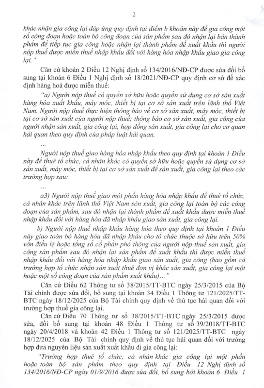 Công văn 13251/CHQ-NVTHQ ngày 04/03/2026 của Cục Hải quan đã làm rõ quy định về thuế nhập khẩu đối với hàng hóa gia công lại, đặc biệt trong trường hợp doanh nghiệp thuê đơn vị khác thực hiện một phần hoặc toàn bộ công đoạn sản xuất.