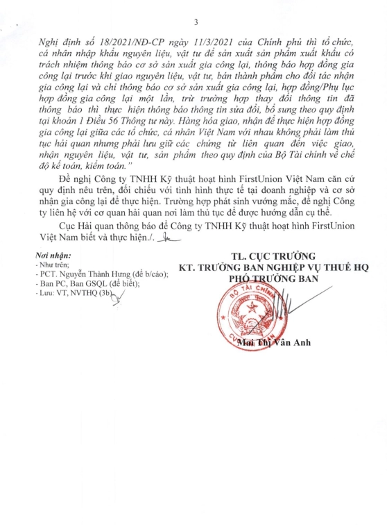 - Phải thông báo cơ sở gia công, gia công lại cho cơ quan hải quan