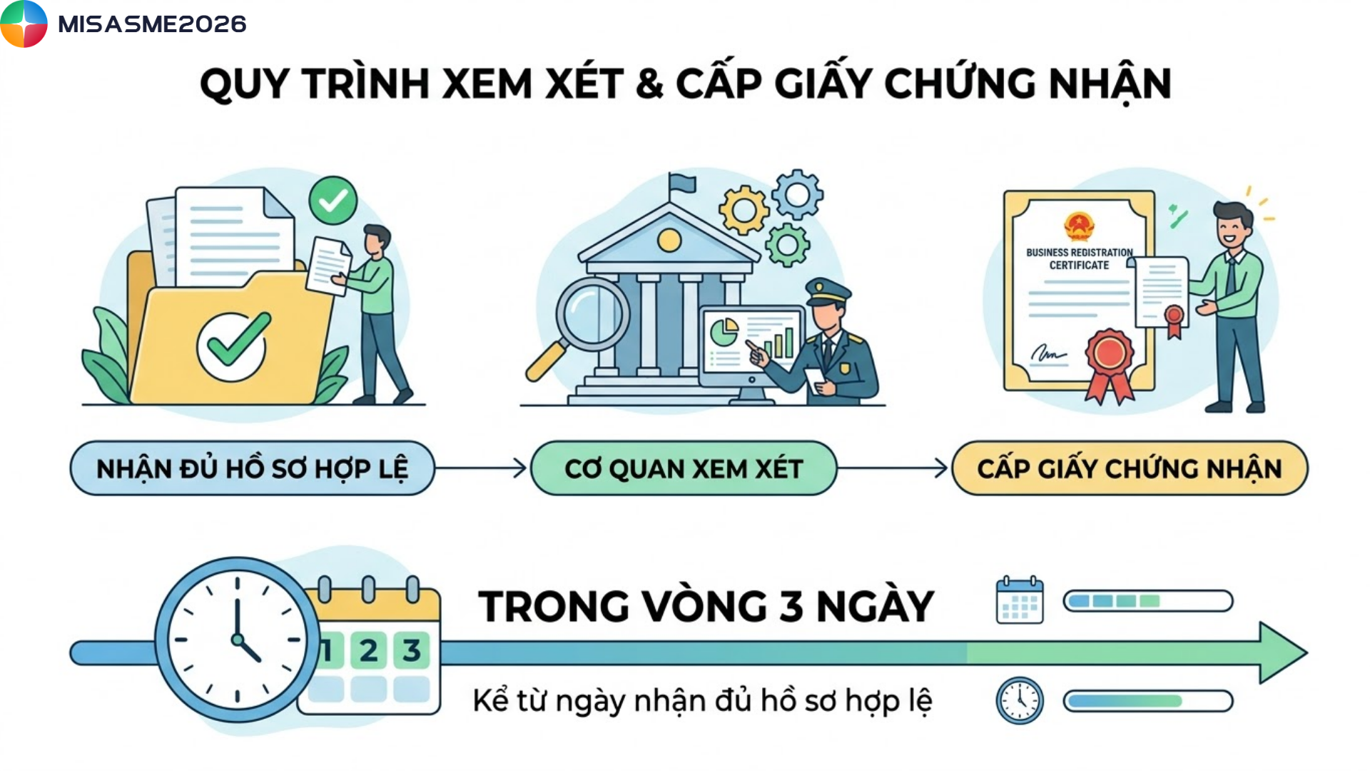 Cụ thể, Cơ quan đăng ký kinh doanh sẽ xem xét và cấp Giấy chứng nhận đăng ký kinh doanh trong vòng 3 ngày kể từ ngày nhận đủ hồ sơ hợp lệ. Sau đó sẽ tiếp hành cập nhật tình trạng pháp lý của doanh nghiệp trên hệ thống dữ liệu quốc gia.