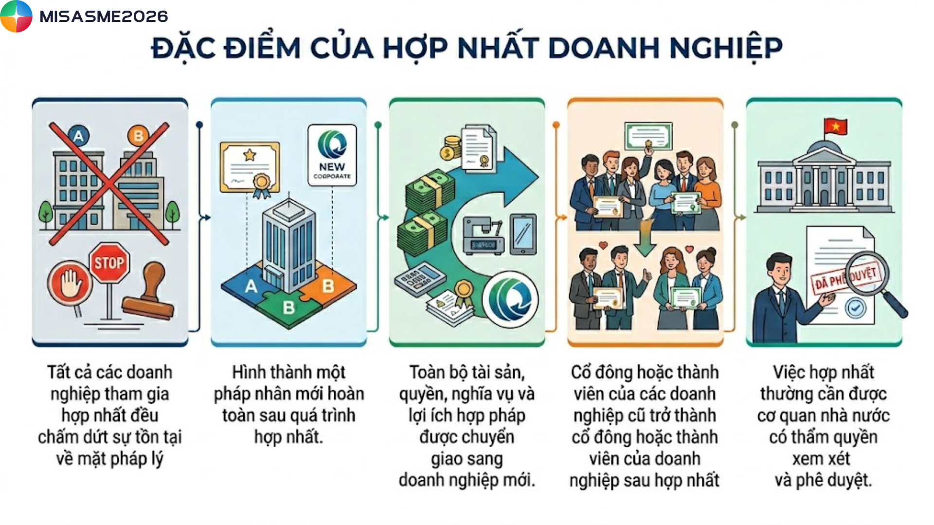 - Tất cả các doanh nghiệp tham gia hợp nhất đều chấm dứt sự tồn tại về mặt pháp lý