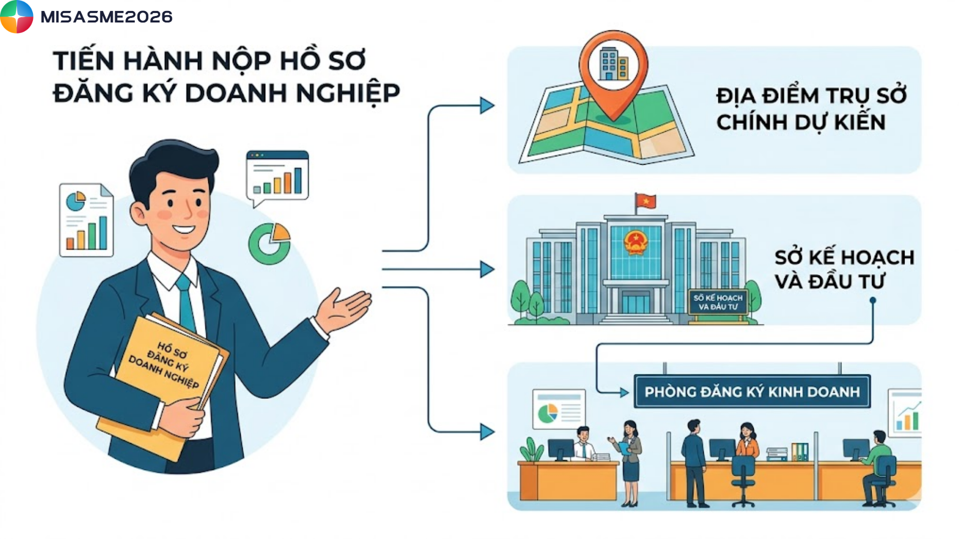 - Chuẩn bị đầy đủ hồ sơ và thực hiện đúng trình tự đăng ký doanh nghiệp tại cơ quan có thẩm quyền