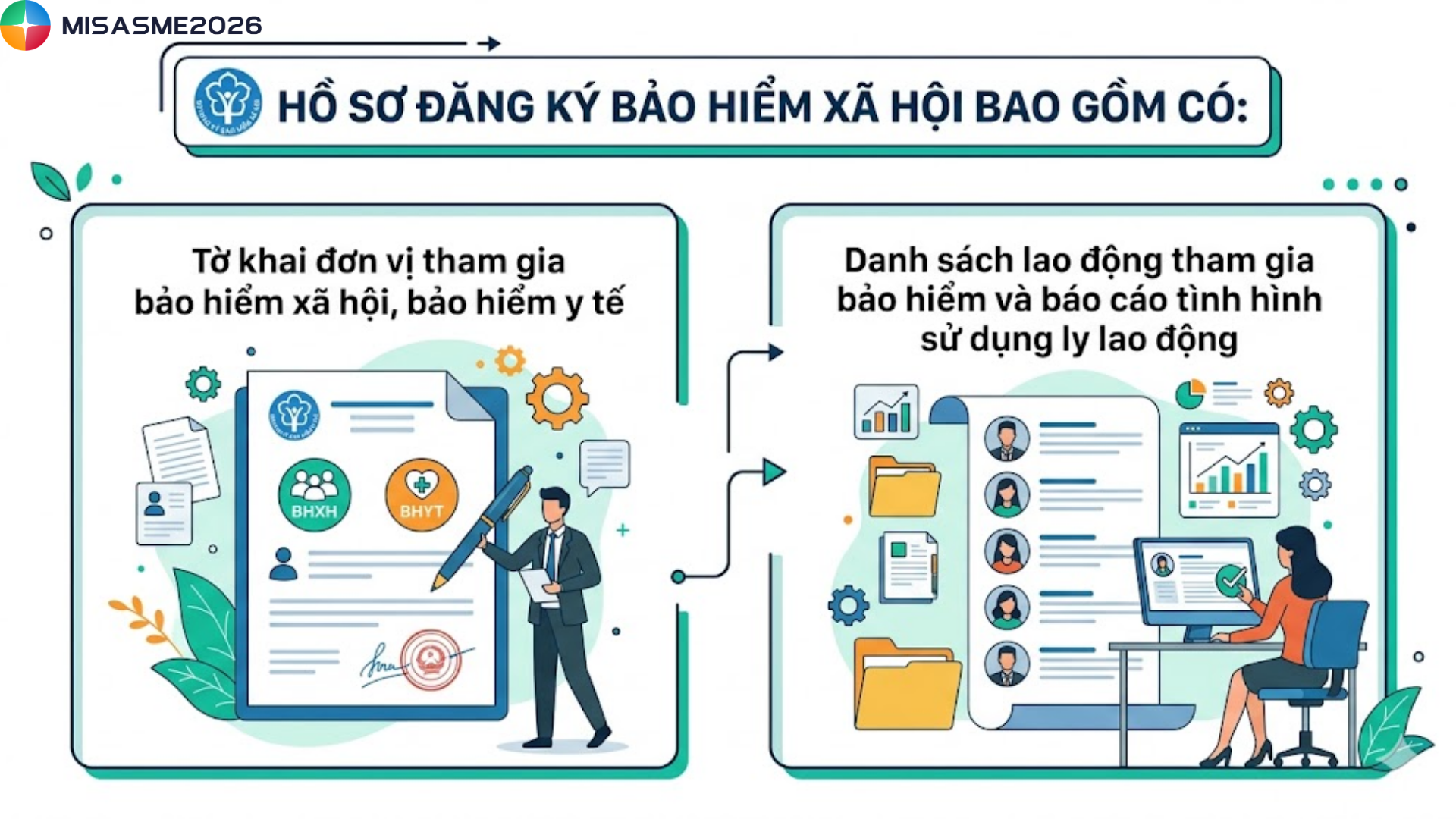Khi ký hợp đồng lao động chính thức, doanh nghiệp có trách nhiệm đăng ký bảo hiểm xã hội cho người lao động trong thời hạn quy định. Đây là nghĩa vụ bắt buộc nhằm đảm bảo quyền lợi về bảo hiểm và tuân thủ quy định pháp luật.