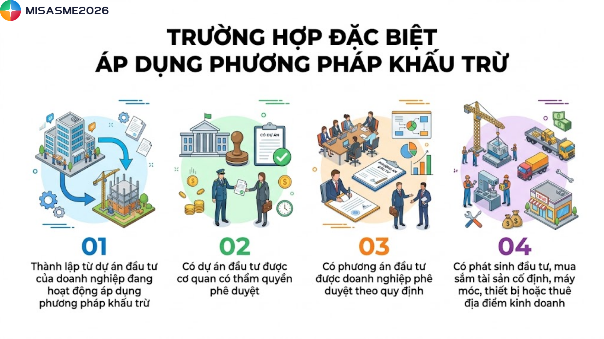 Một số doanh nghiệp mới thành lập được áp dụng hoặc đăng ký tự nguyện phương pháp khấu trừ, đặc biệt trong các trường hợp: