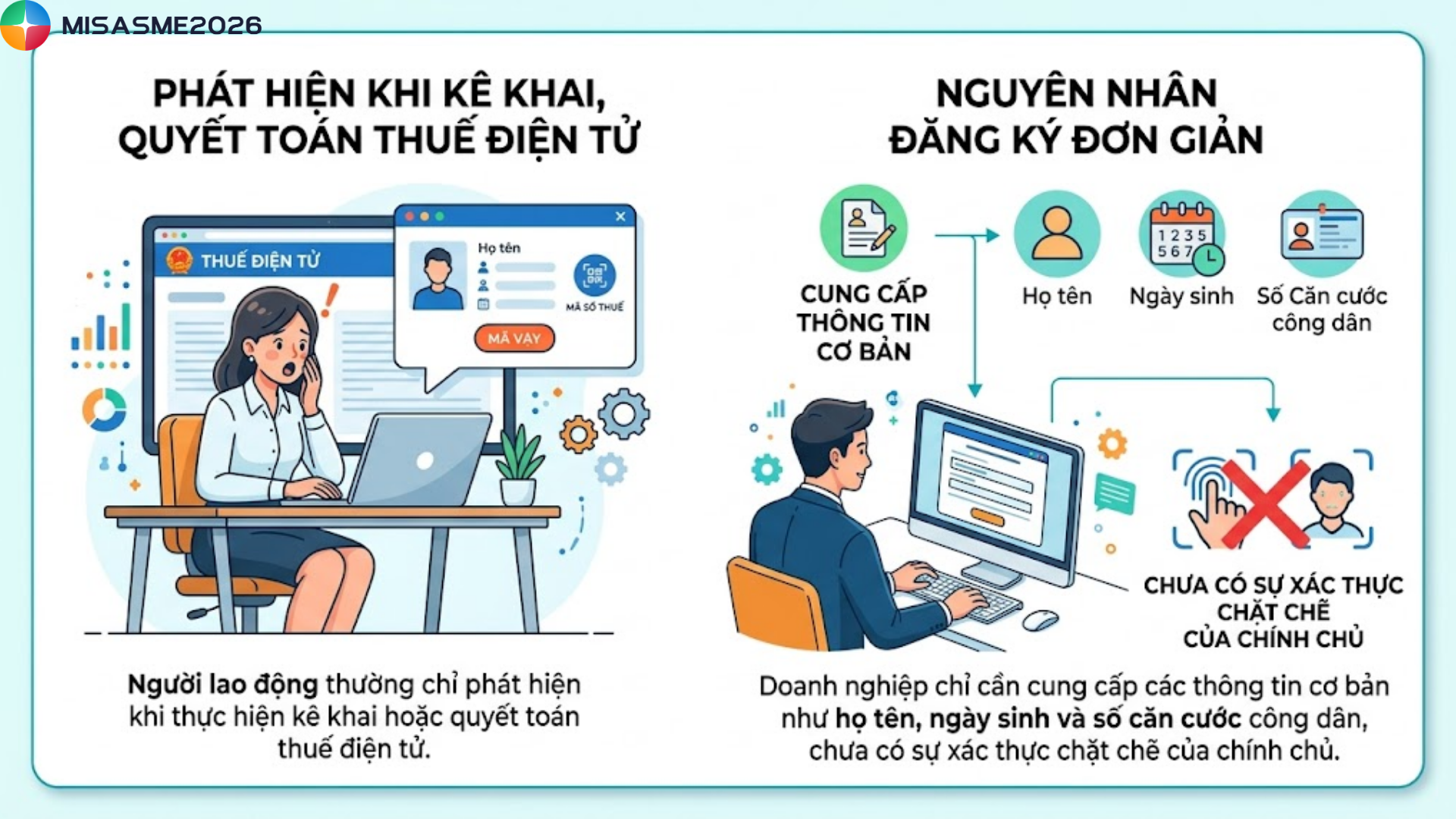 Người lao động thường chỉ phát hiện khi thực hiện kê khai hoặc quyết toán thuế điện tử. Nguyên nhân là do việc đăng ký mã số thuế cá nhân hiện nay rất đơn giản. Doanh nghiệp chỉ cần cung cấp các thông tin cơ bản như họ tên, ngày sinh và số căn cước công dân, chưa có sự xác thực chặt chẽ của chính chủ.