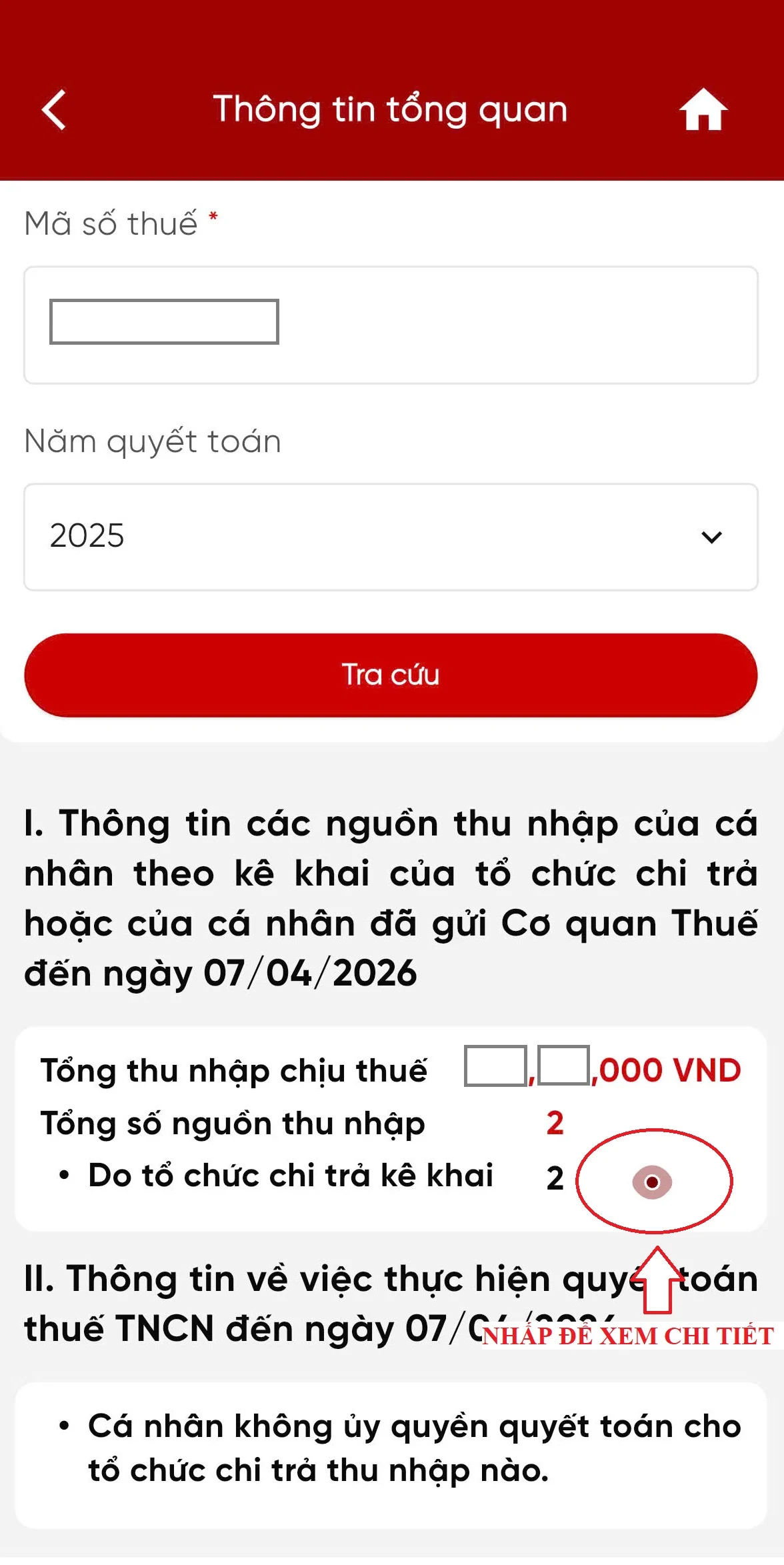 Bước 1: Kiểm tra thông tin thu nhập đã kê khai