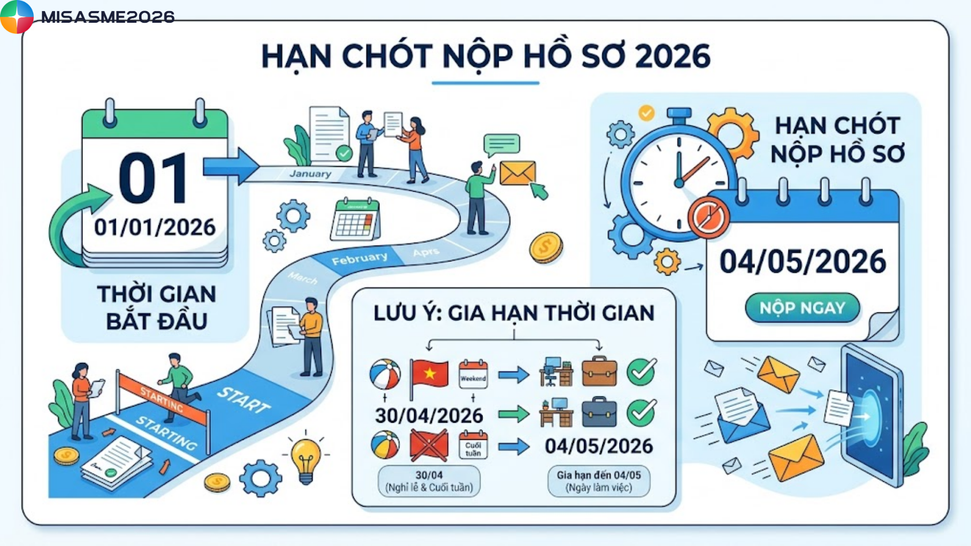 - Hạn chót nộp hồ sơ: Ngày 04/05/2026 (Mốc 30/04 trùng với ngày nghỉ lễ và cuối tuần nên thời gian được gian hạn sang ngày làm việc tiếp theo)