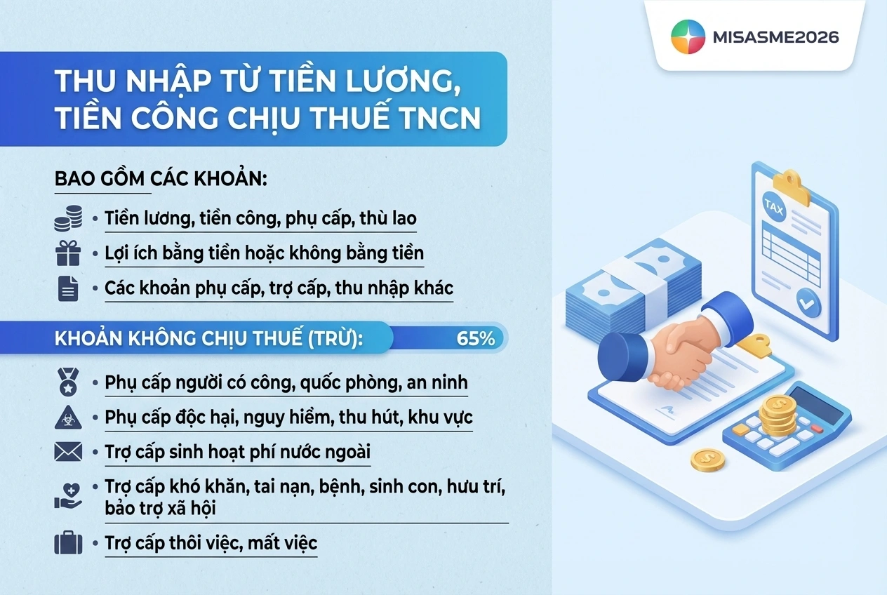 Bài viết dưới đây phần mềm kế toán MISA SME sẽ cập nhật đầy đủ quy định mới nhất về các khoản phụ cấp chịu thuế TNCN