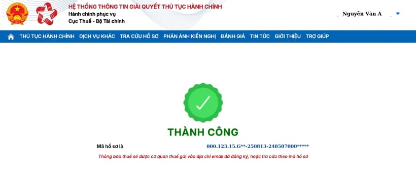 Sau khi nộp hồ sơ thành công sẽ được cấp mã hồ sơ để tra cứu thông tin.