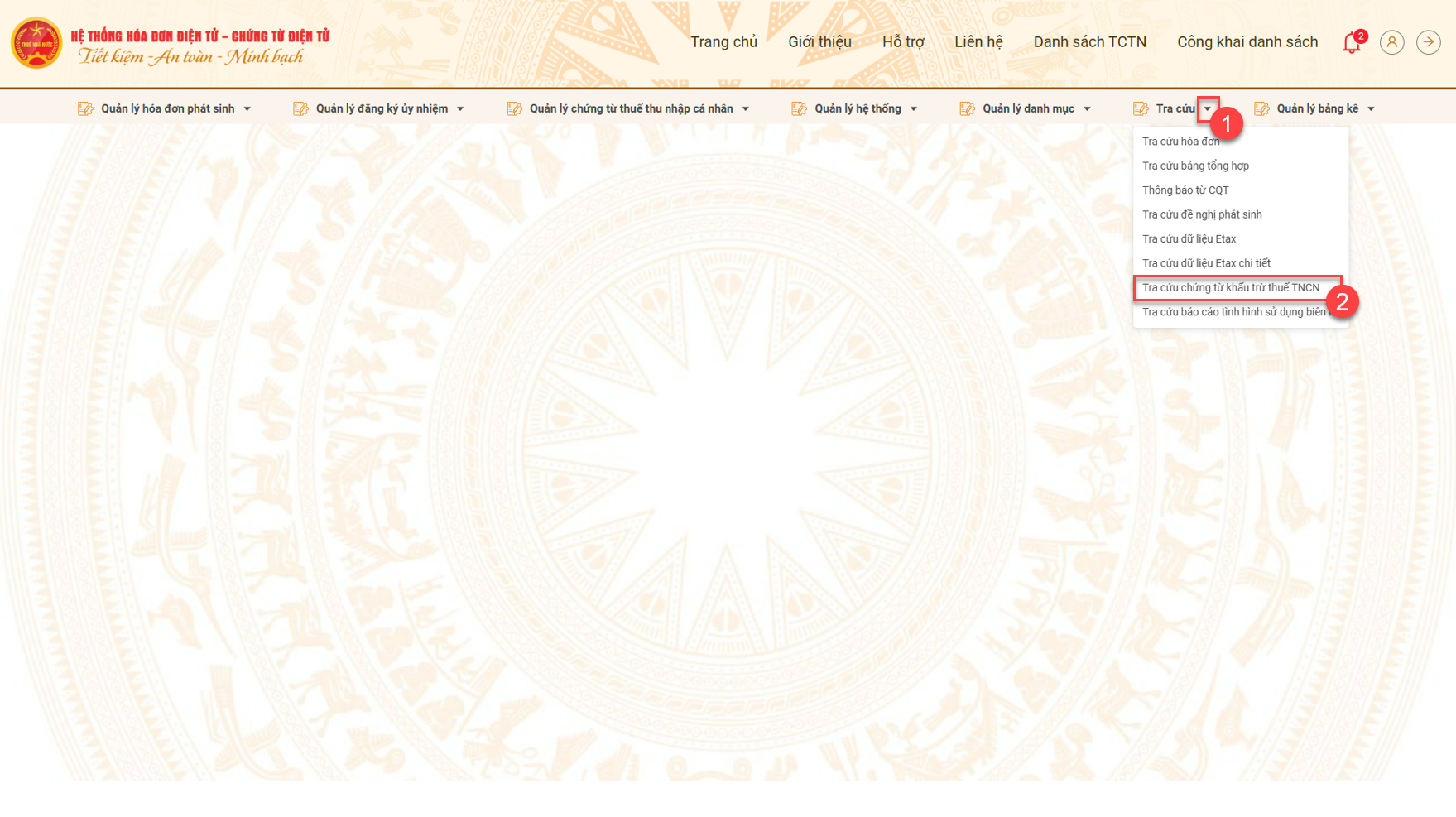 1. Hướng dẫn tra cứu chứng từ khấu trừ thuế TNCN đối với doanh nghiệp
