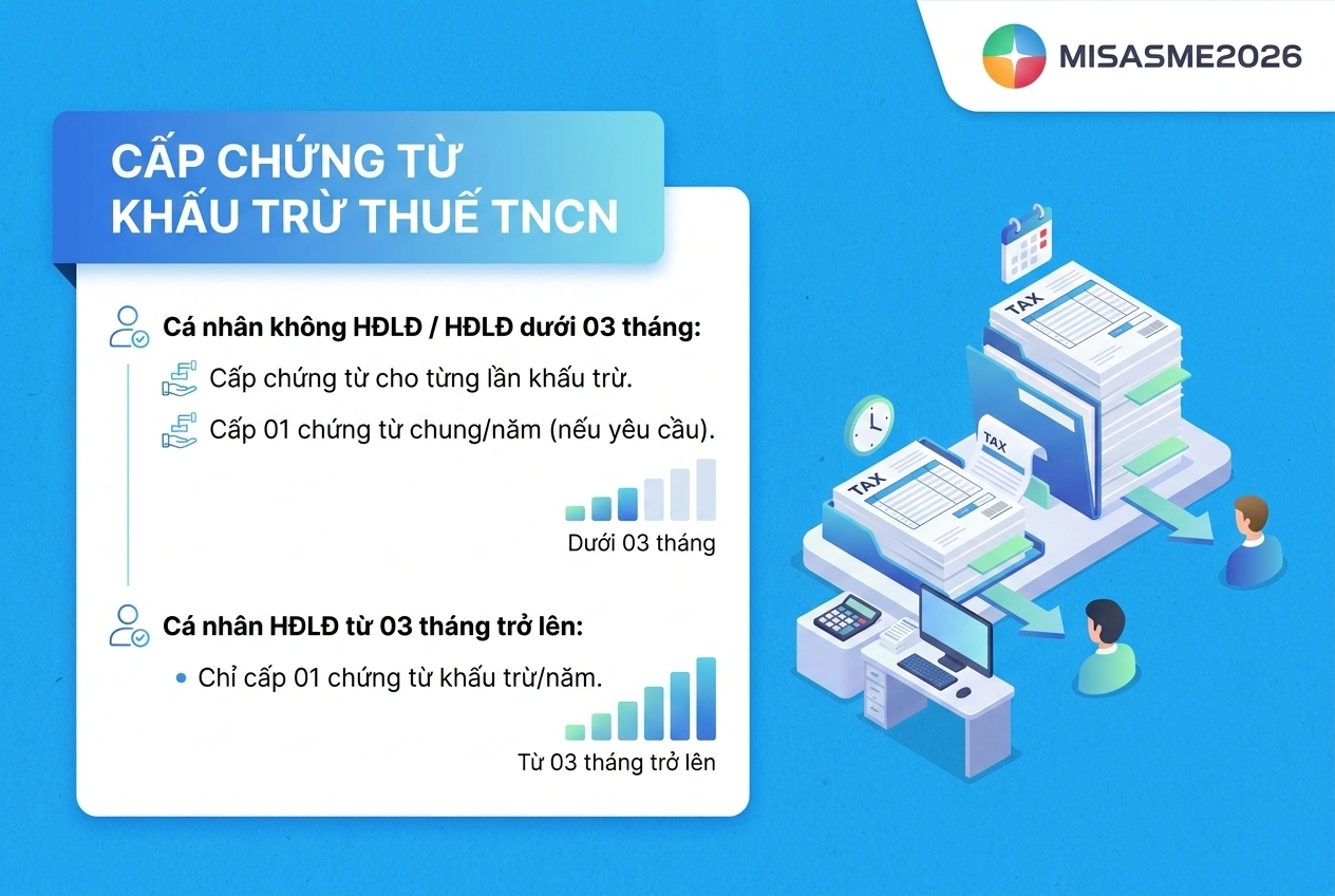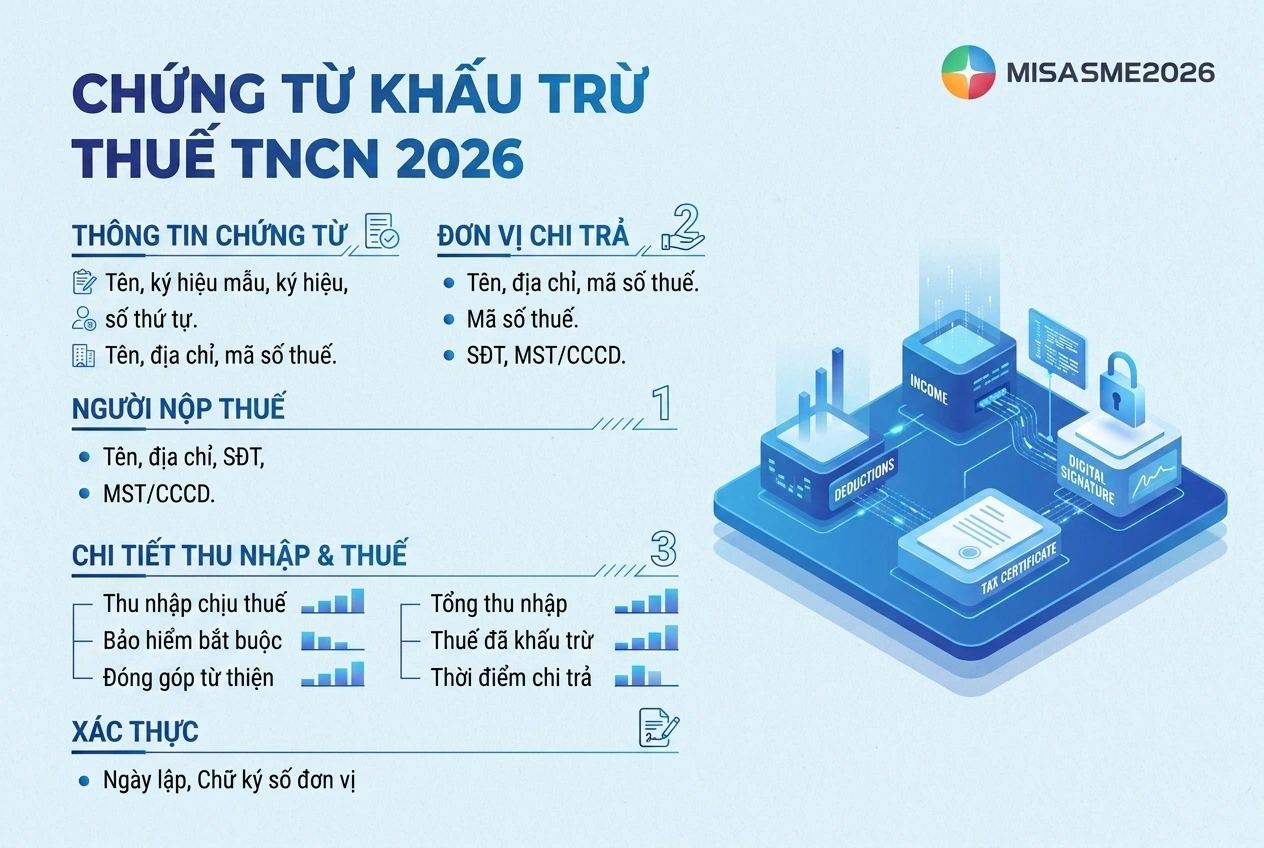 Chứng từ khấu trừ thuế thu nhập cá nhân (TNCN) là căn cứ quan trọng để cá nhân quyết toán thuế và doanh nghiệp thực hiện đúng nghĩa vụ kê khai, lưu trữ hồ sơ thuế. Tuy nhiên, không ít trường hợp còn lúng túng khi tra cứu chứng từ trên hệ thống điện tử hoặc chưa nắm rõ quy định mới áp dụng từ năm 2026.