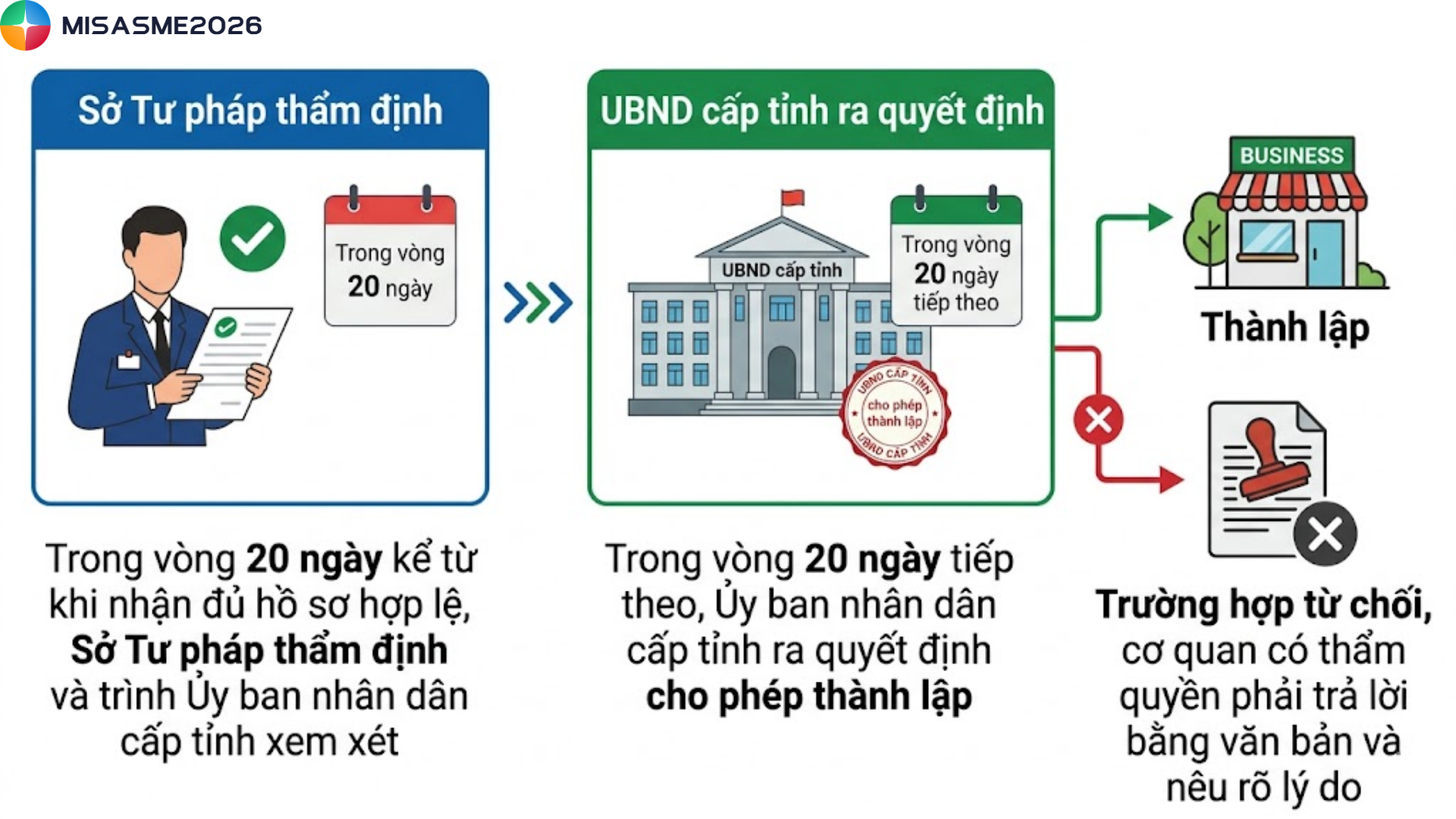 - Trong vòng 20 ngày tiếp theo, Ủy ban nhân dân cấp tỉnh ra quyết định cho phép thành lập