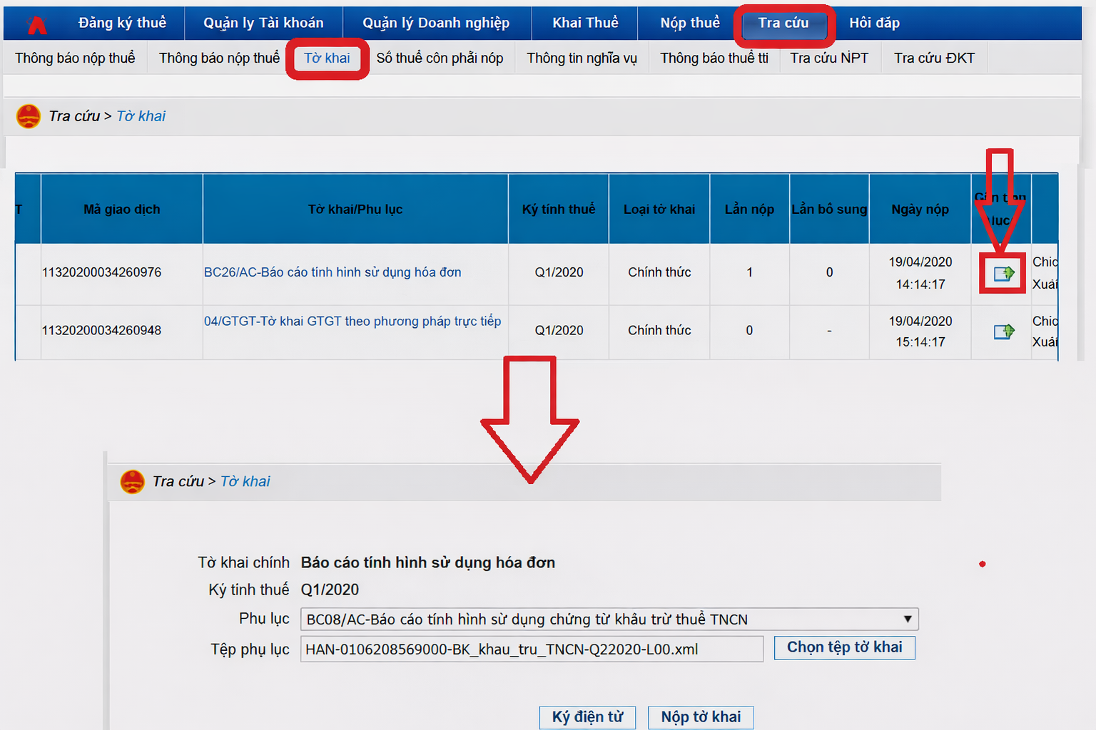 Cách 1: Lập và nộp trực tiếp bảng kê