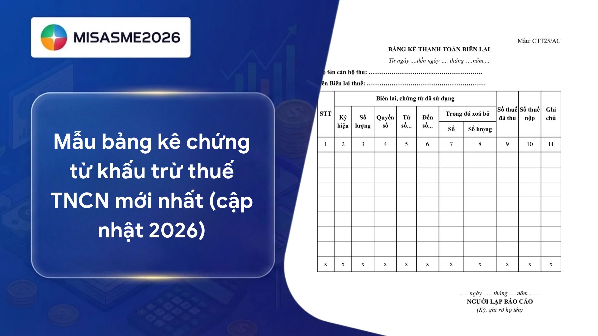 Trong quá trình kê khai và quyết toán thuế, bảng kê chứng từ khấu trừ thuế TNCN là một trong những hồ sơ quan trọng mà doanh nghiệp không thể bỏ qua. Tuy nhiên, không ít kế toán vẫn còn nhầm lẫn về trường hợp phải cấp chứng từ, cách lập và thời hạn nộp đúng quy định. Nếu bạn đang cần hiểu rõ toàn bộ quy trình từ A–Z để tránh sai sót và tối ưu công việc, hãy theo dõi chi tiết bài viết dưới đây của phần mềm kế toán MISA SME để nắm vững cách lập bảng kê chứng từ khấu trừ thuế TNCN chuẩn nhất.