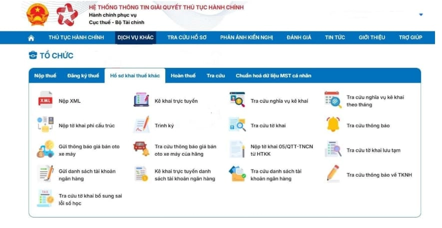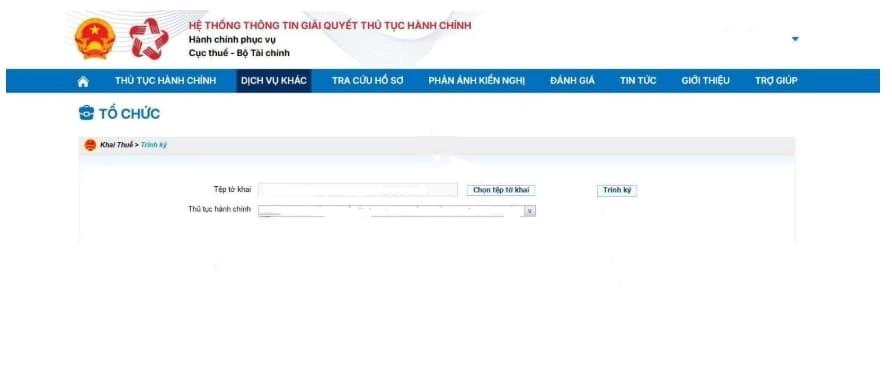 Tại giao diện trang chủ, thực hiện theo đường dẫn: Dịch vụ khác → Hồ sơ khai thuế khác → Trình ký