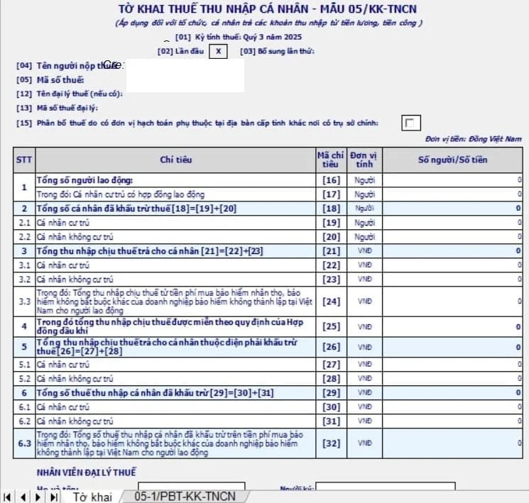- Nếu doanh nghiệp có đơn vị phụ thuộc hoặc người lao động làm việc khác tỉnh, có thể phát sinh Phụ lục 05-1/PBT-KK-TNCN để xác định số thuế phải nộp cho từng địa phương theo quy định.