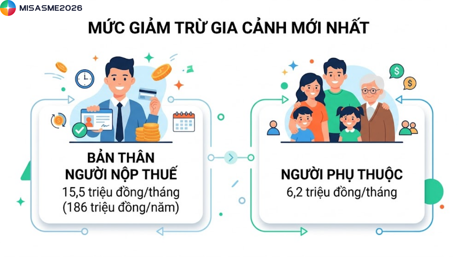 Theo quy định hiện hành, mức giảm trừ gia cảnh mới nhất áp dụng từ ngày 01/01/2026 như sau: