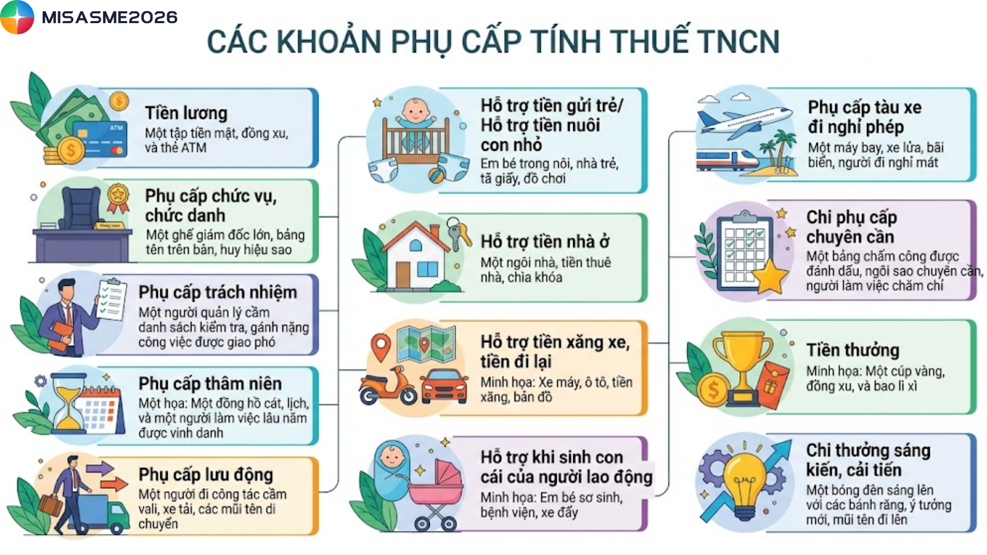Dưới đây là tổng hợp những các khoản phụ cấp tính thuế TNCN phổ biến mà người lao động cần lưu ý:
