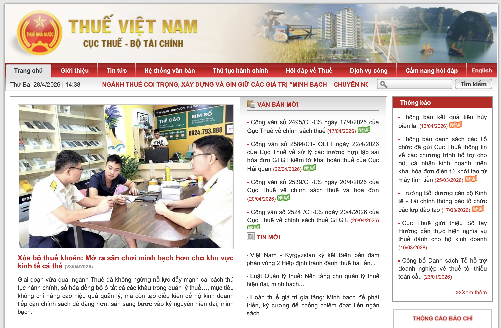 Cách 1: Tra cứu trên trang thông tin điện tử của Tổng Cục thuế